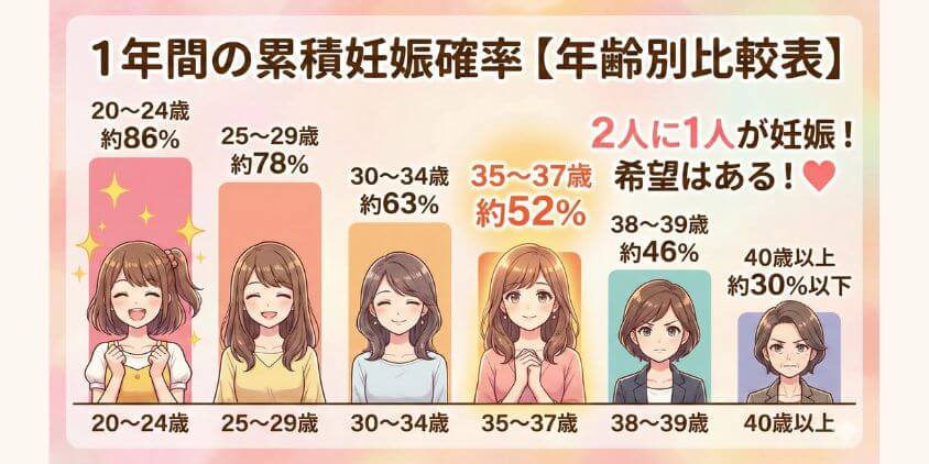 1年間の累積妊娠確率【年齢別比較表】