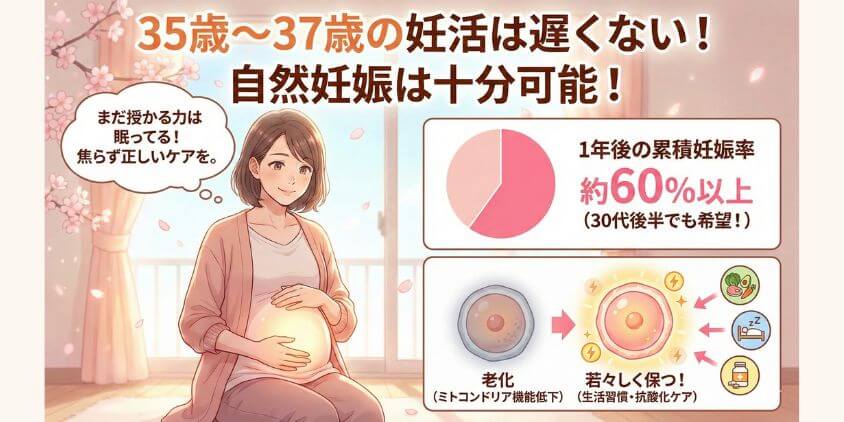 35歳~37歳という年齢は、医学的には「高年出産」の入り口とされる場合が多いですが、自然妊娠が不可能になる年齢ではないわ。