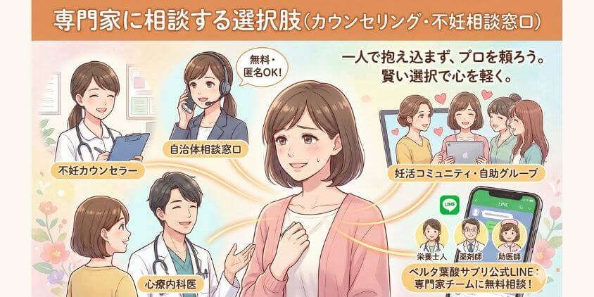 妊活中の不安やストレスが大きくなりすぎたときは、専門家の力を借りるのも大切な選択肢です。