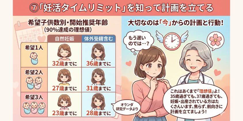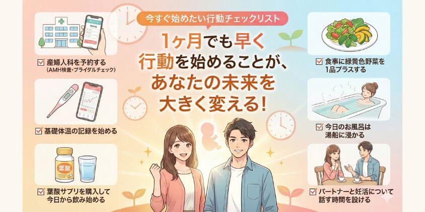 まずは産婦人科の予約を取る、葉酸サプリを買う、基礎体温を測り始める――小さな一歩でいいので、今日から動き出しましょう。