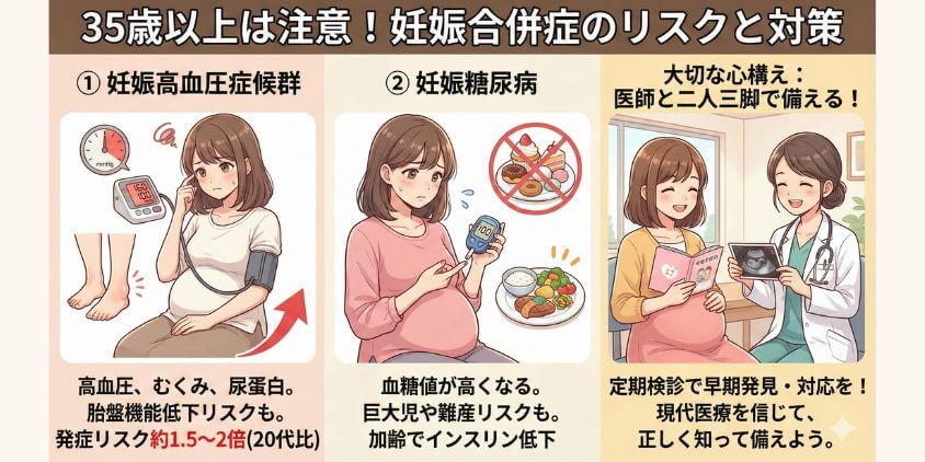 一方で、「初産で35歳を超えてしまった。高齢出産のリスクが心配…」という方もいらっしゃるでしょう。