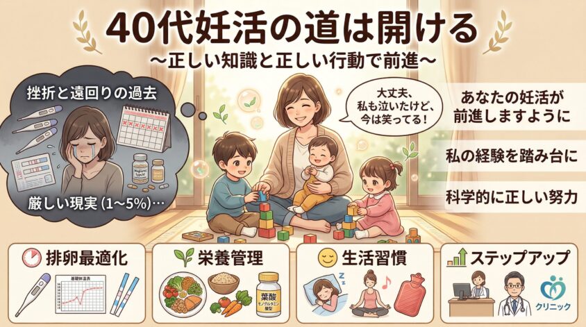 だからこそ言える。40代のタイミング法は確率が低い。でも「低い」は「ゼロ」じゃない。正しい知識と正しい行動で、あなたにできることはまだたくさんある。