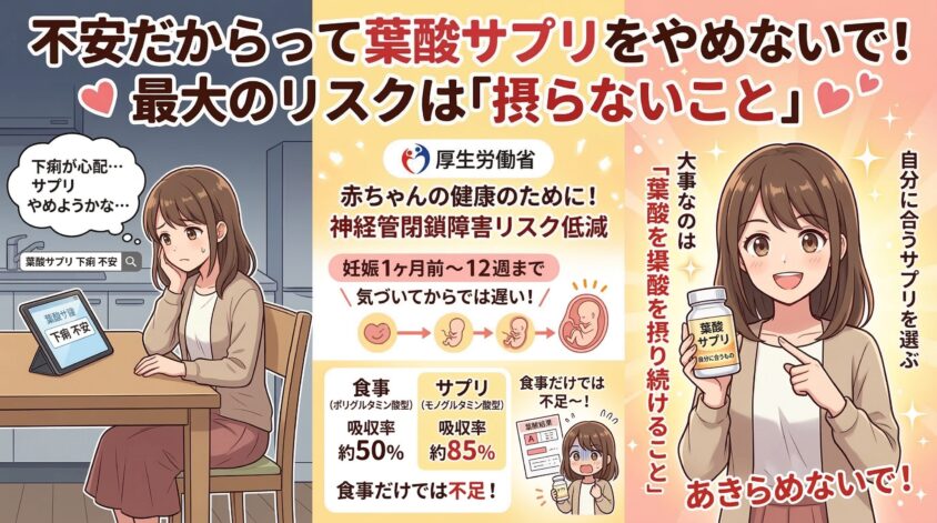 下痢を理由に葉酸サプリをやめてしまうのが、実は一番リスクが高い選択なの。