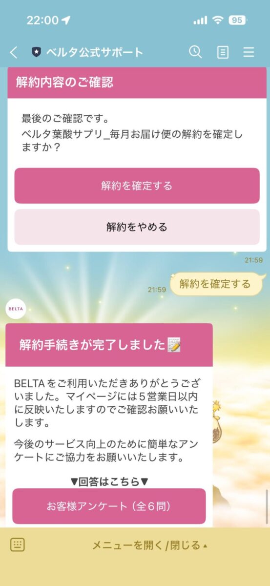 ベルタの解約や産後サプリへの切り替えは、公式LINEから簡単にできた。