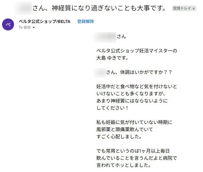 またアフターフォローがしっかりしており、妊活~妊娠期に参考になるアドバイスをメールで時々送ってくれます。
