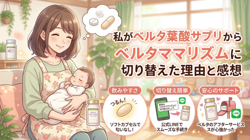 私自身、妊活中からベルタ葉酸サプリを飲み、産後はベルタママリズムに切り替えて今に至る。ベルタのアフターフォローの手厚さ、解約のしやすさ、製品の信頼性は自分で体験して確認済み。