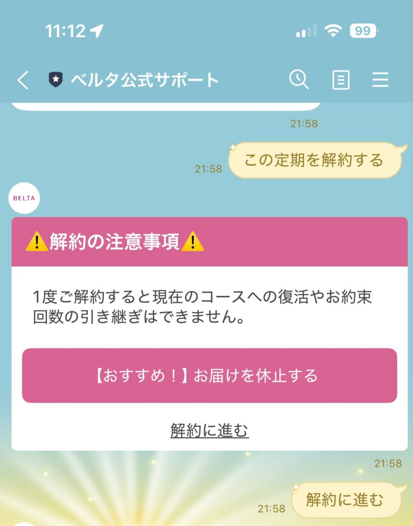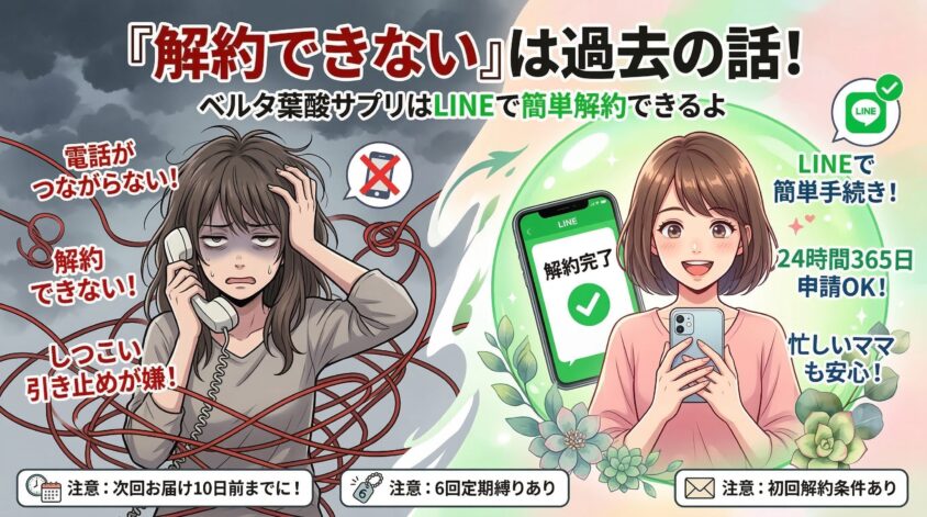 現在、ベルタ葉酸サプリの定期コースは公式LINEから解約手続きが可能。