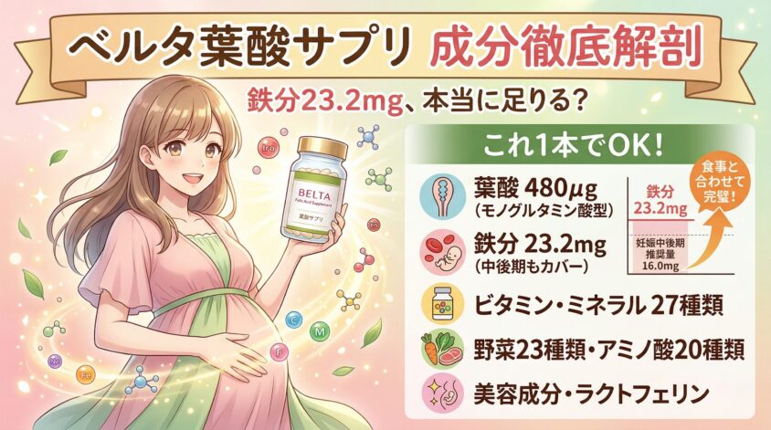 ベルタ葉酸サプリの成分を徹底解剖|鉄分23.2mgは本当に足りる?