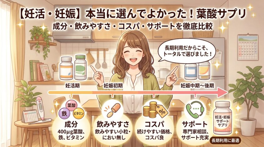 もし今、「どの葉酸サプリを選べばいいの?」と迷っているなら、下の比較を参考にしてみてね。妊活・妊娠中に特におすすめのラインナップだよ。