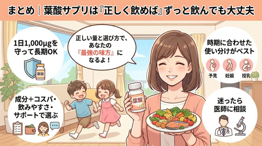 まとめ|葉酸サプリは「正しく飲めば」ずっと飲んでも大丈夫