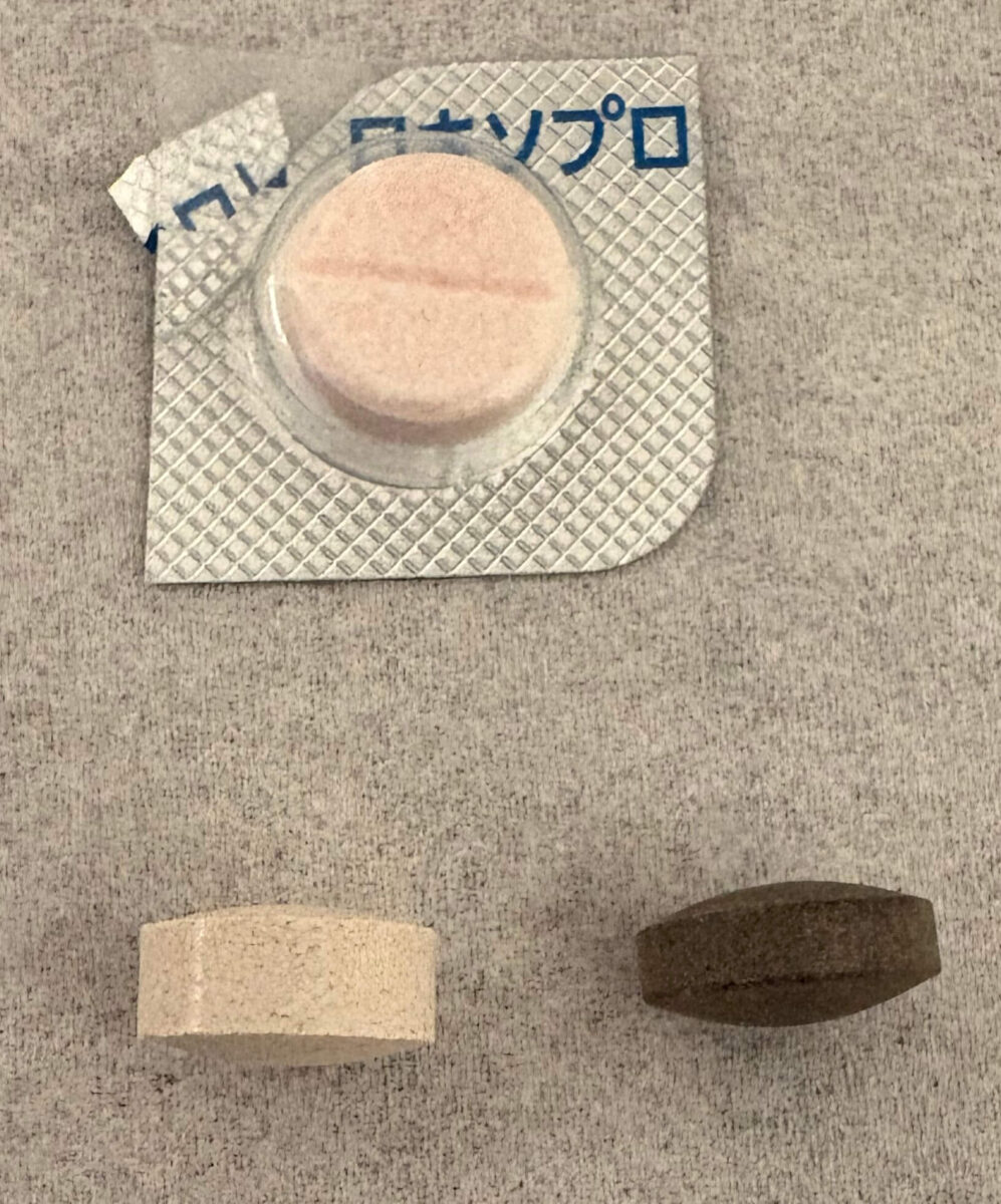 粒の大きさは、鎮痛剤のロキソプロフェンやバファリンなどと大体同じ大きさよ。