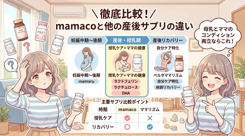 • ラクトフェリン・DHAまで揃うのは産後特化設計のmamacoならでは