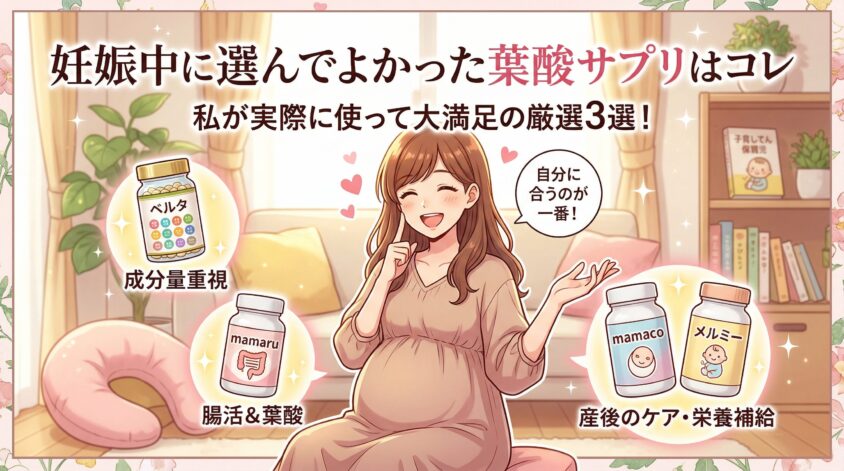 どのサプリも一長一短があるから、「自分が一番重視するポイント」で選んでみてね。成分量重視ならベルタ、腸活も一緒にしたいならmamaru、産後の栄養補給ならmamacoやメルミーが候補になるよ。