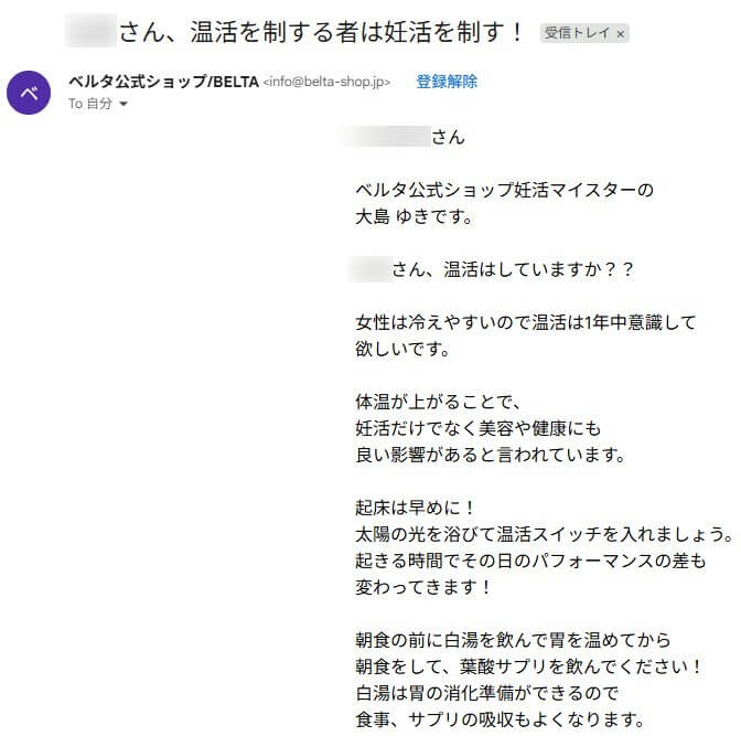 ベルタ公式ショップのメールやLINEは、サプリ切り替えなどの勧誘案内もありますが、妊活に大切な豆知識などのお便りはとても勉強になりました。