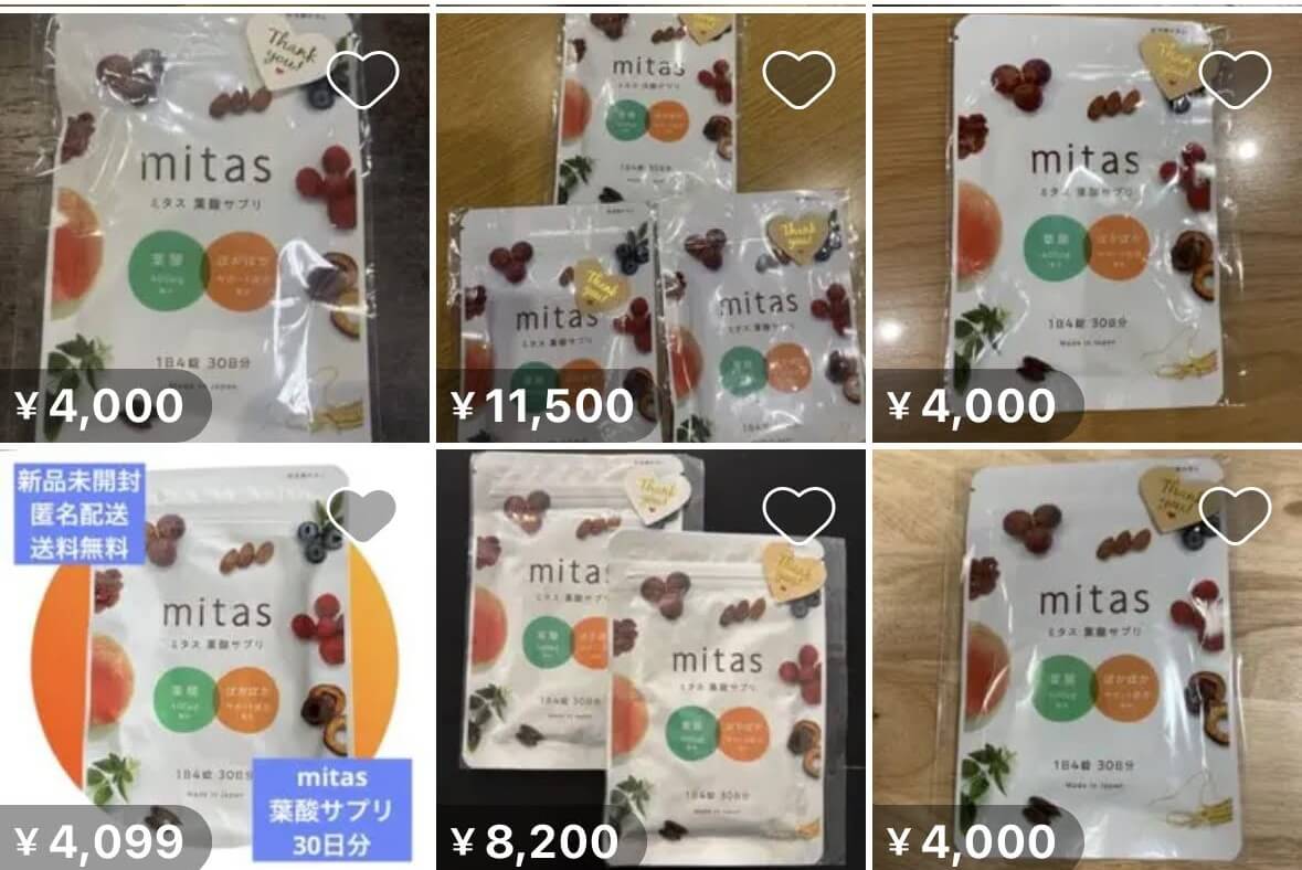 mitas(ミタス)とベルタ葉酸サプリは、フリマアプリなどの非公式ルートの利用は避けましょう。