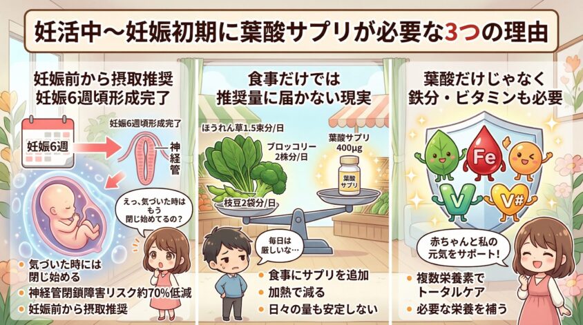 妊活中〜妊娠初期に葉酸サプリが必要な3つの理由