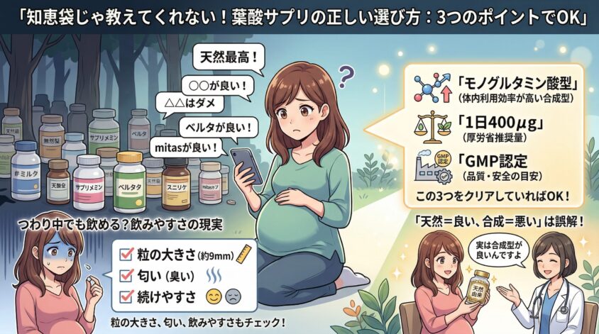 • 選ぶ基準は「モノグルタミン酸型・400μg・GMP認定」の3つ